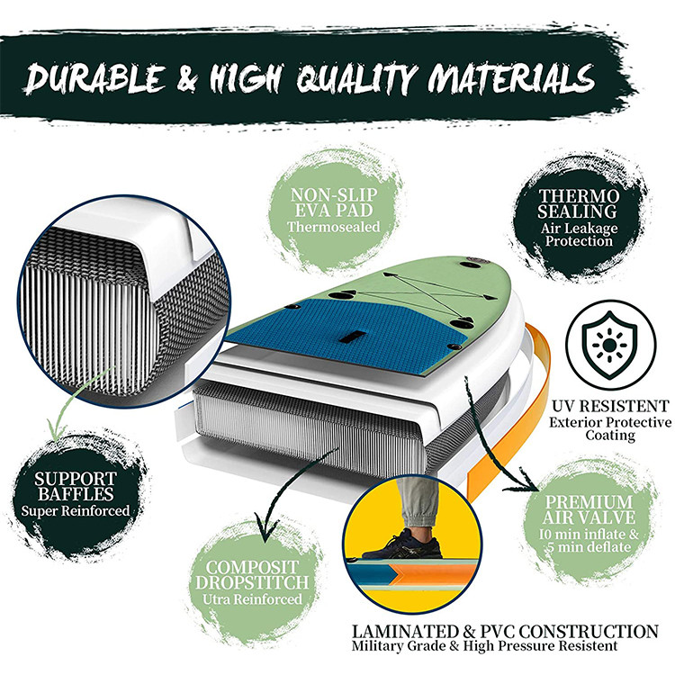- [Askeri PVC & YÜZER kürek]Bu şişme ayaklı kürek tahtası, Askeri Ultra Hafif PVC Damla Dikiş Kumaşından yapılmıştır.Bu, yıllarca dayanıklı, sert, sert ve sağlam bir şişme destek tahtası oluşturur.Birinci sınıf kaymaz yumuşak güverte, güvenliği sağlar ve tutuşu artırır.3 parçalı katlanabilir alüminyum küreğimiz yüzer, ASLA batmaz, bu da size büyük kolaylık sağlar.Bu yüzer kürek, standart SUP küreklerden %45 daha hafif olan ergonomik bir ağırlığa sahiptir.