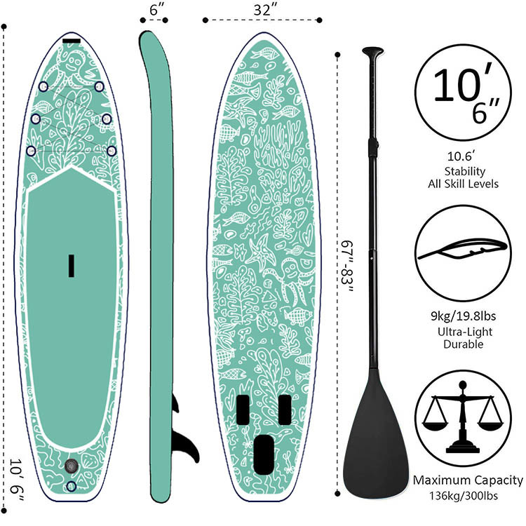 - Yükseltilmiş Dayanıklı Malzeme:Huarui SUP, yüksek kaliteli PVC'den yapılmıştır ve uzun süreli kullanım için stabilite ve güvenlik sağlayan damla dikişli yapıya sahiptir.10'6”uzunluk x 32'' genişlik x 6'' kalınlık, 330 lbs'ye kadar ağırlık kapasitesi ile. Ekstra geniş SUP tasarımı, evcil hayvanların ayağa kalkıp dengede kalması için tüm beceri seviyeleri için kolaydır.